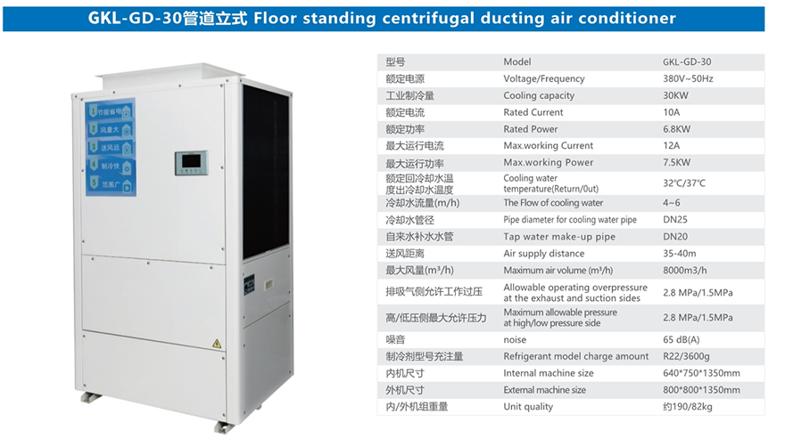 GKL-GD-30管道立式蒸发冷高效空调机组